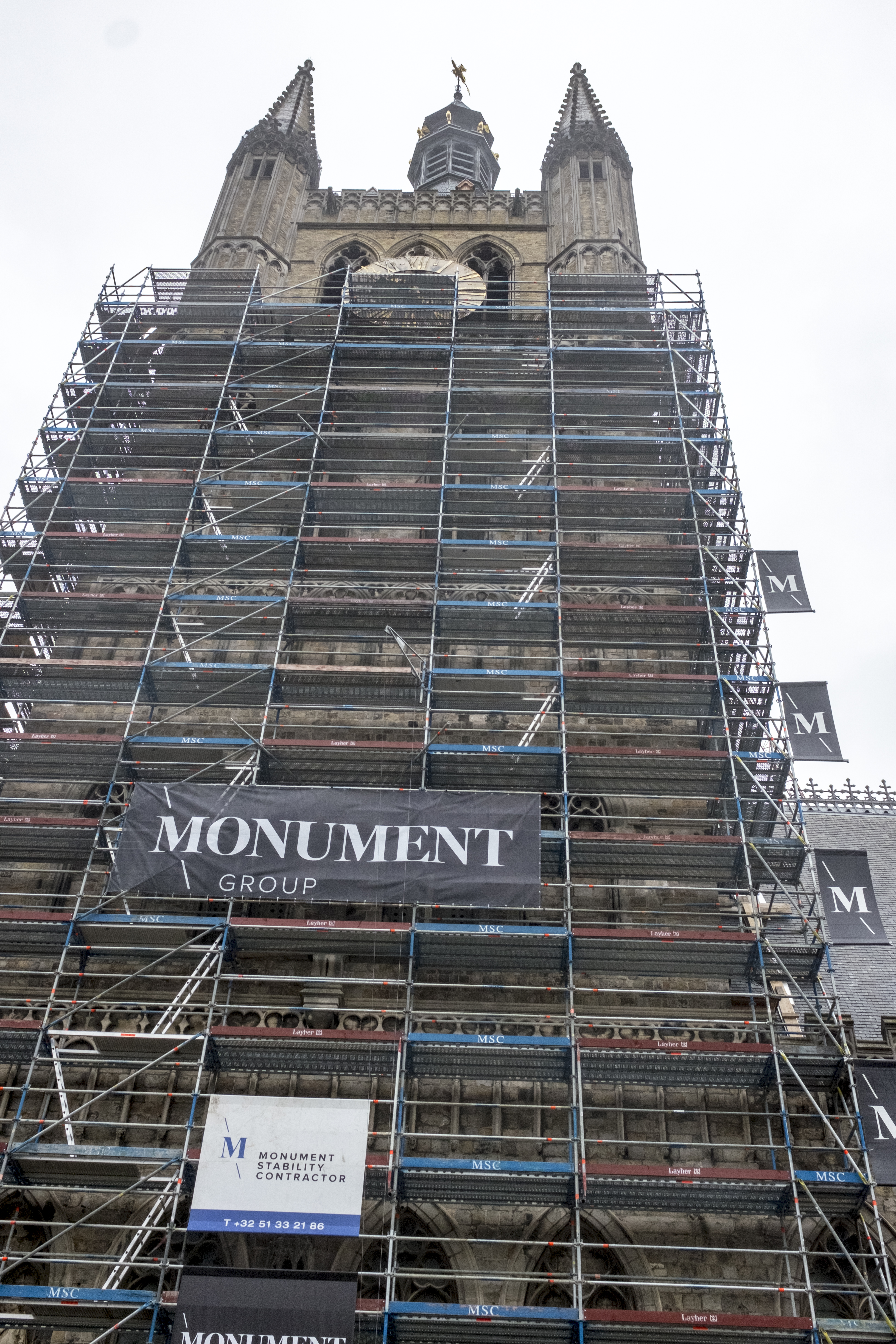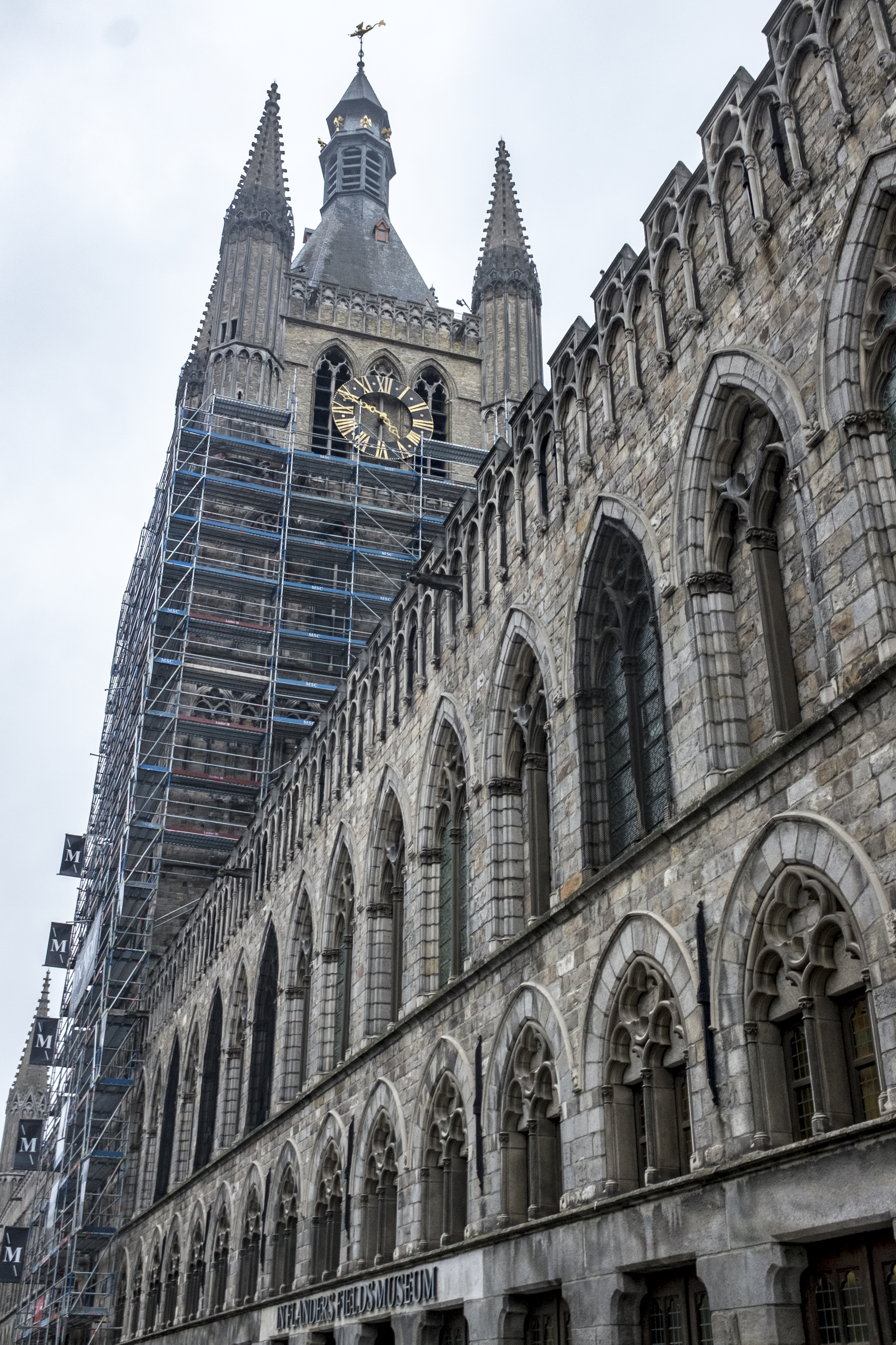 Ieper, Lakenhalle en Belfort in de steigers.