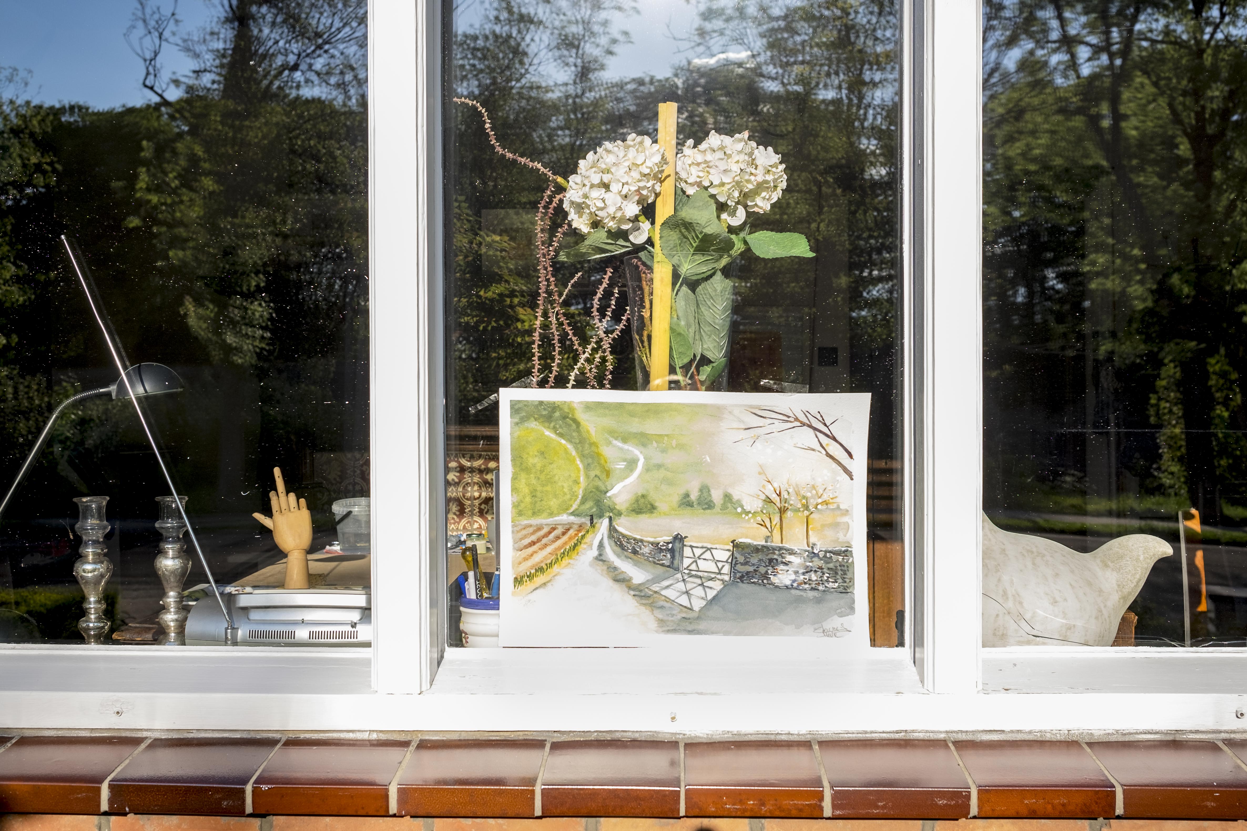 Corona…kunst achter het raam spotten.