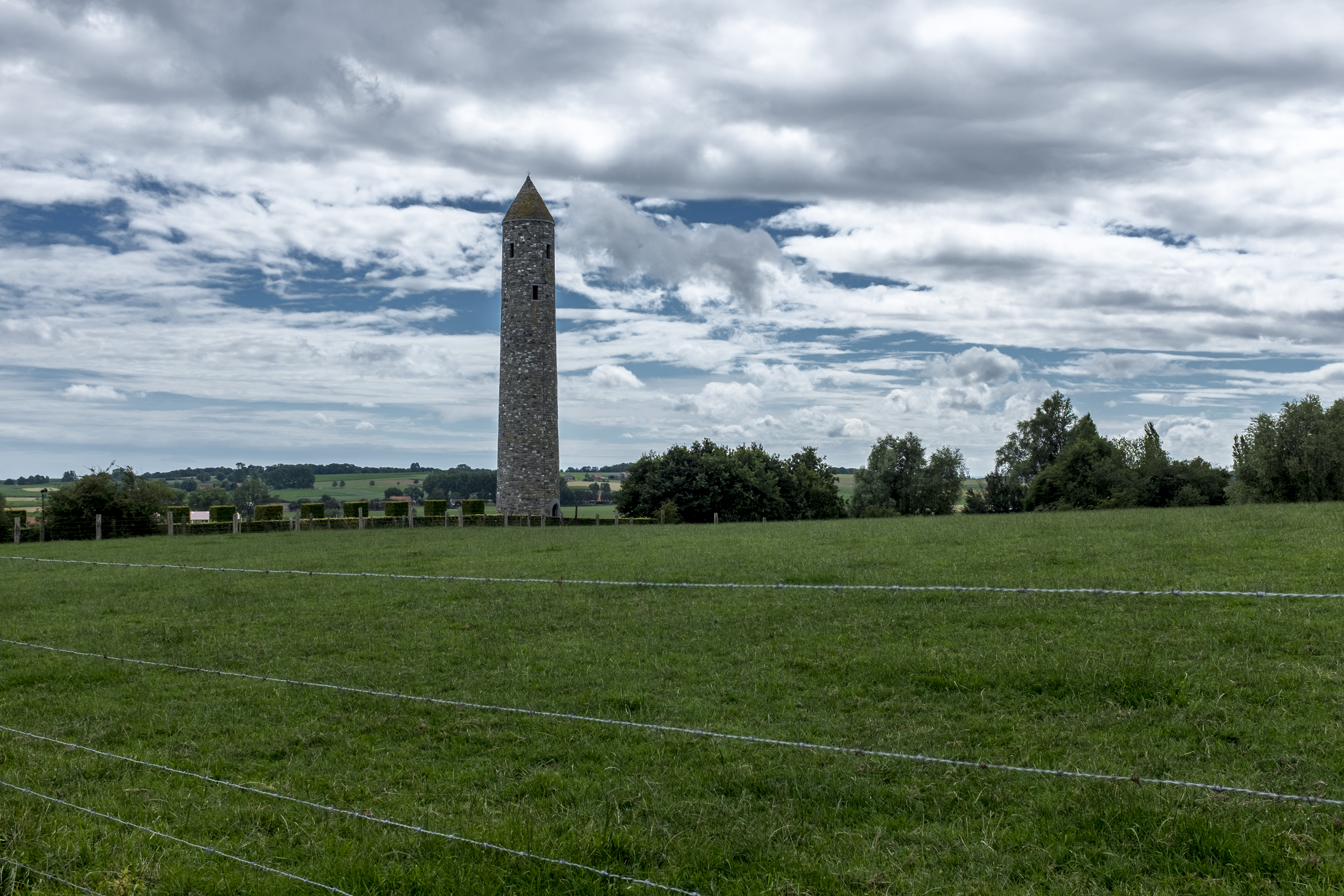 Mesen,ronde toren van het Iers Vredespark.